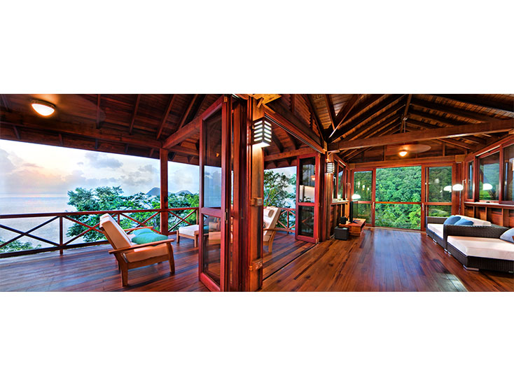 - A large open verandah with spectacular views of the Caribbean Sea and mountains.