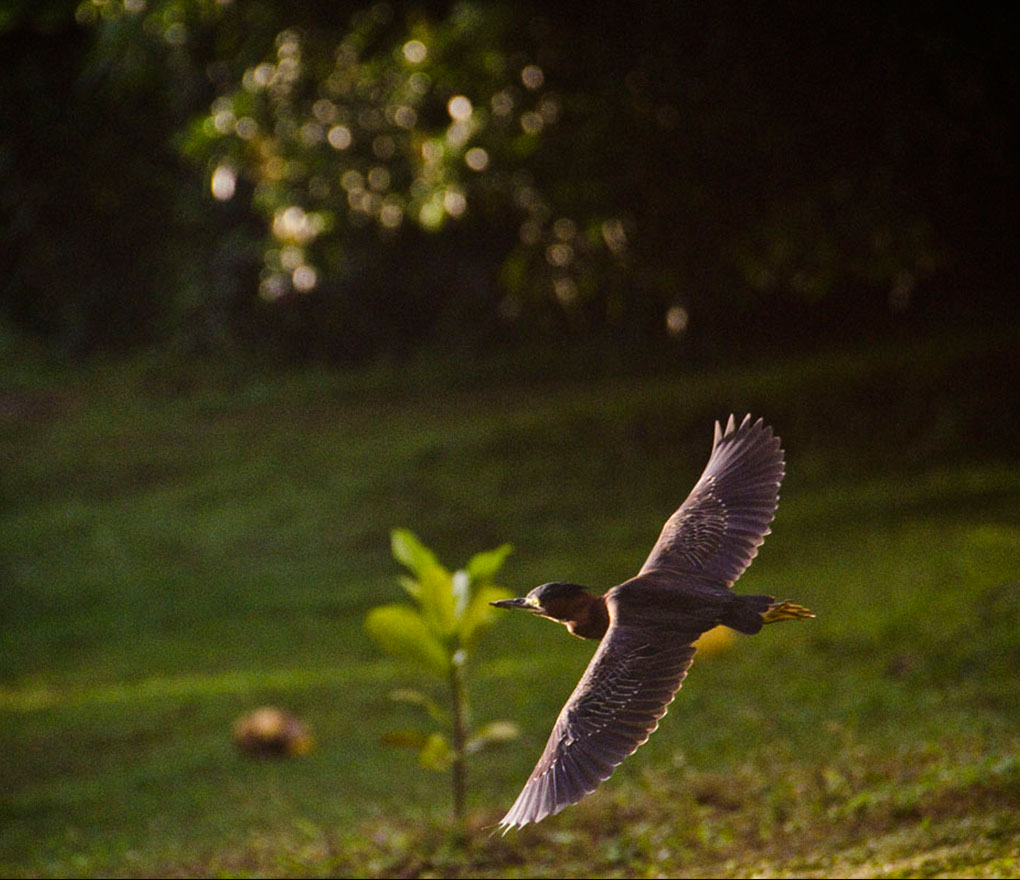 Little Green Heron (Butorides virescens) Found in swampy or damp areas, the Green Heron is often sighted along rivers and in the wetter parts of the island. They feed on insects, rodents, fish, frogs and crustaceans. The Great Blue Heron is also common in Dominica. It looks similar, but has a longer neck and blue/gray colouring on neck and wings.