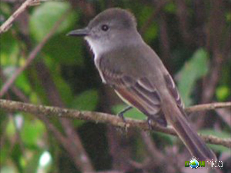 Lesser Antillean Flycatcher (Myiarchus oberi) Male: green above, the tail and underparts blackish, conspicuous crest. Widespread from mountain forest to sea level but most abundant in lowlands.
