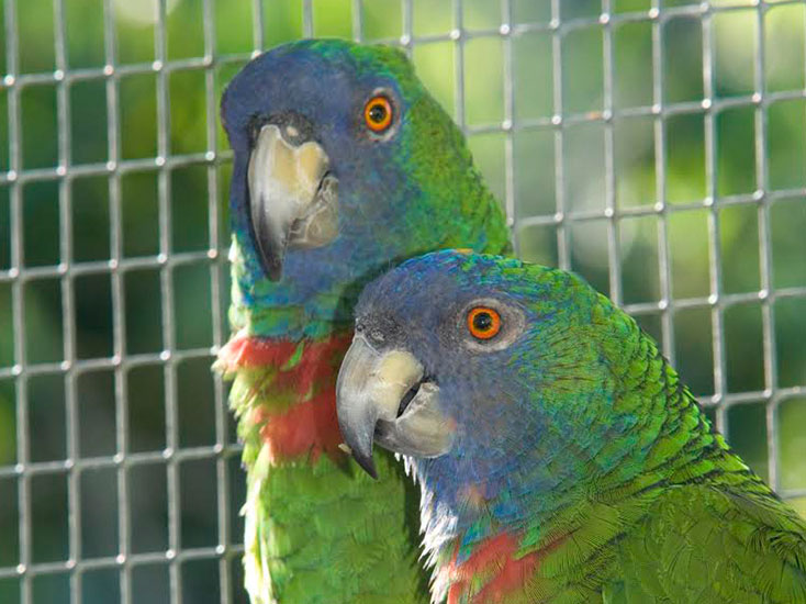 The adult Sisserou (Amazona imerialis) is 18 – 20 inches long and weighs 2 pounds. Their wingspan is around 30 inches. The upper parts and back are mostly green with greenish blue head. There is a red streak on the wing-tips. Parrots pair themselves off for life. They have been known to live to be 70 years old.