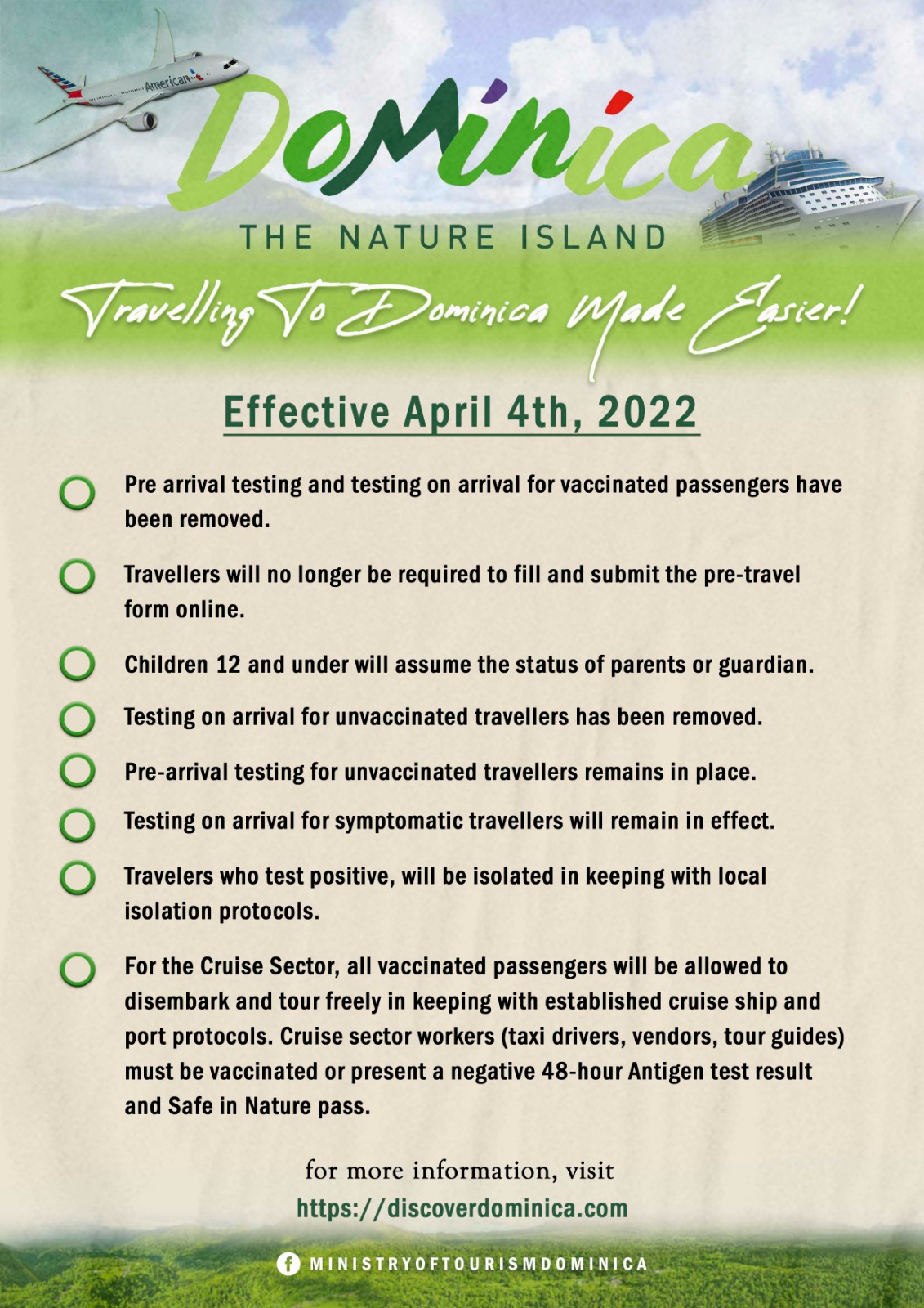 Plan on bringing pets? For more information call the Ministry of Agriculture on 1 (767) 266-3271 or 1 (767) 266-3270.